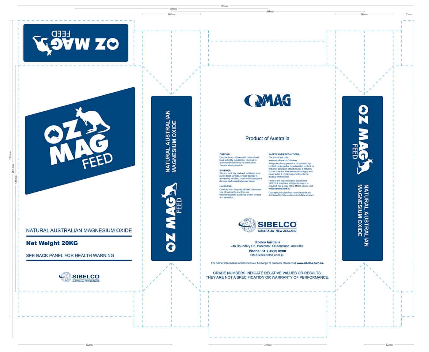 20KG bag packaging for agricultural feed product. Design, layout and print file preparation Tools used: Illustrator